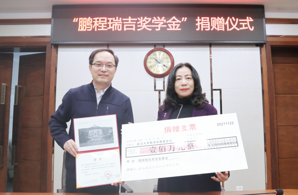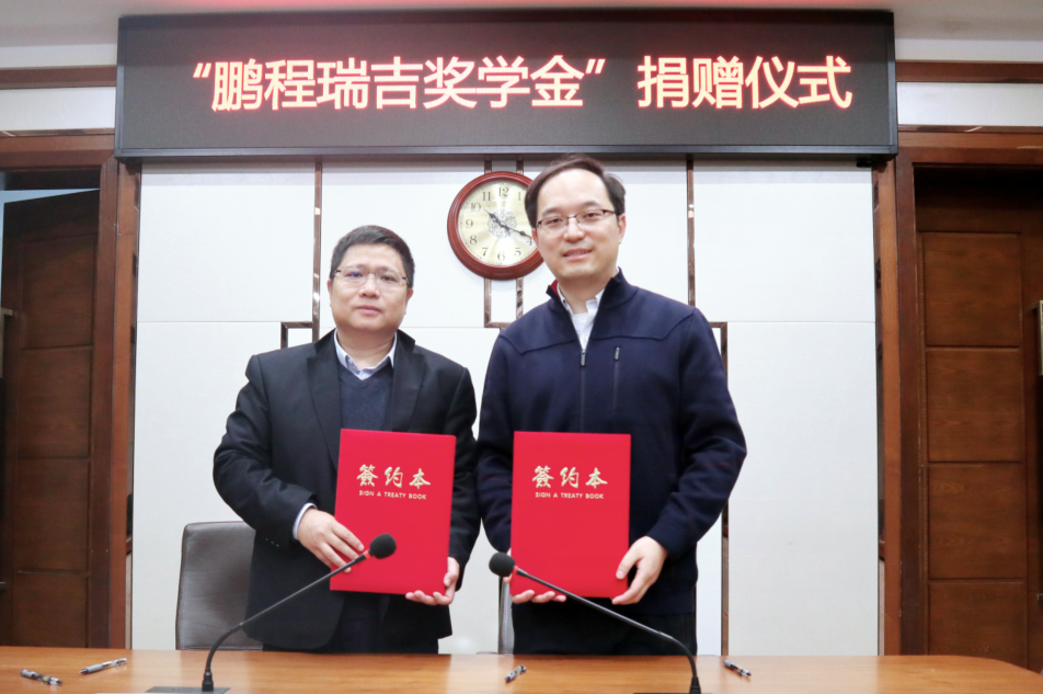最后,员工事务与发展联络处副处长陈纲与深圳市瑞吉生物科技有限公司董事长、CEO胡勇签署捐赠协议。姜星莉书记向深圳市瑞吉生物科技有限公司颁发捐赠证书并合影。