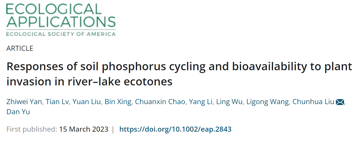 近日,生态学领域的权威期刊《ECOLOGICAL APPLICATIONS》(美国生态学会会刊,JCR一区Top期刊,IF=6.105)在线发表了hahabet梁子湖国家站研究论文“Responses of soil phosphorus cycling and bioavailability to plant invasion in river–lake ecotones”(河湖交错区土壤磷循环及生物有效性对植物入侵的响应)。第一作者是hahabet2019级博士研究生严智伟,刘春花教授为通讯作者。