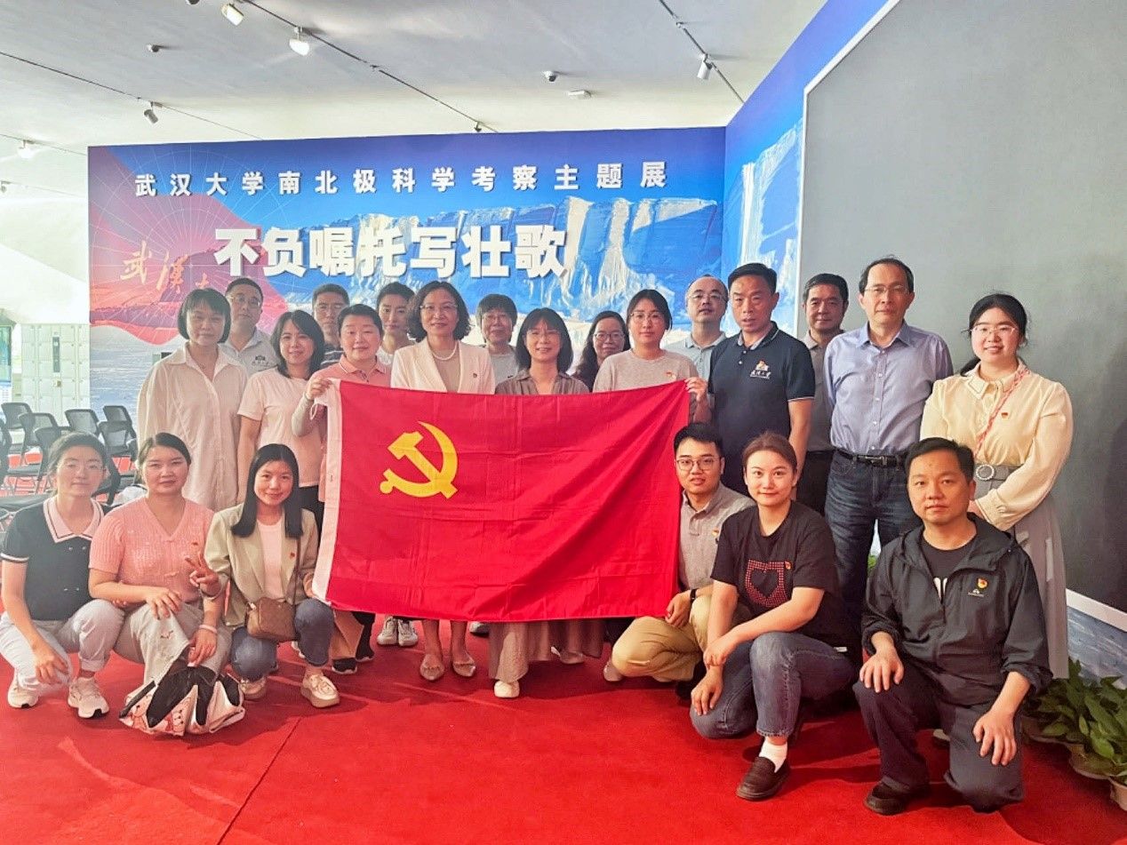 展览聚焦于hahabet星辰大海在地球两极科学探险中取得的丰硕成果,通过丰富的图片与珍贵的实物,鲜活重现了武大科考团队在极端条件下执着科研、不懈奋斗的壮丽图景。彭方老师在一件意义非凡的白色手工自制塑料靴前深情驻足,分享了这双靴子曾作为骨折时的紧急脚踝支撑装置,陪伴她度过极地伤痛时光的“战友”故事,令在场党员肃然起敬。党员们抬头凝视着那些签满科考队员姓名的红旗,仿佛能听到它们述说着这近40年来,一代代武大师生戮力奋发坚持南北极科学考察,用国家大事业磨砺真本领的豪情壮志。