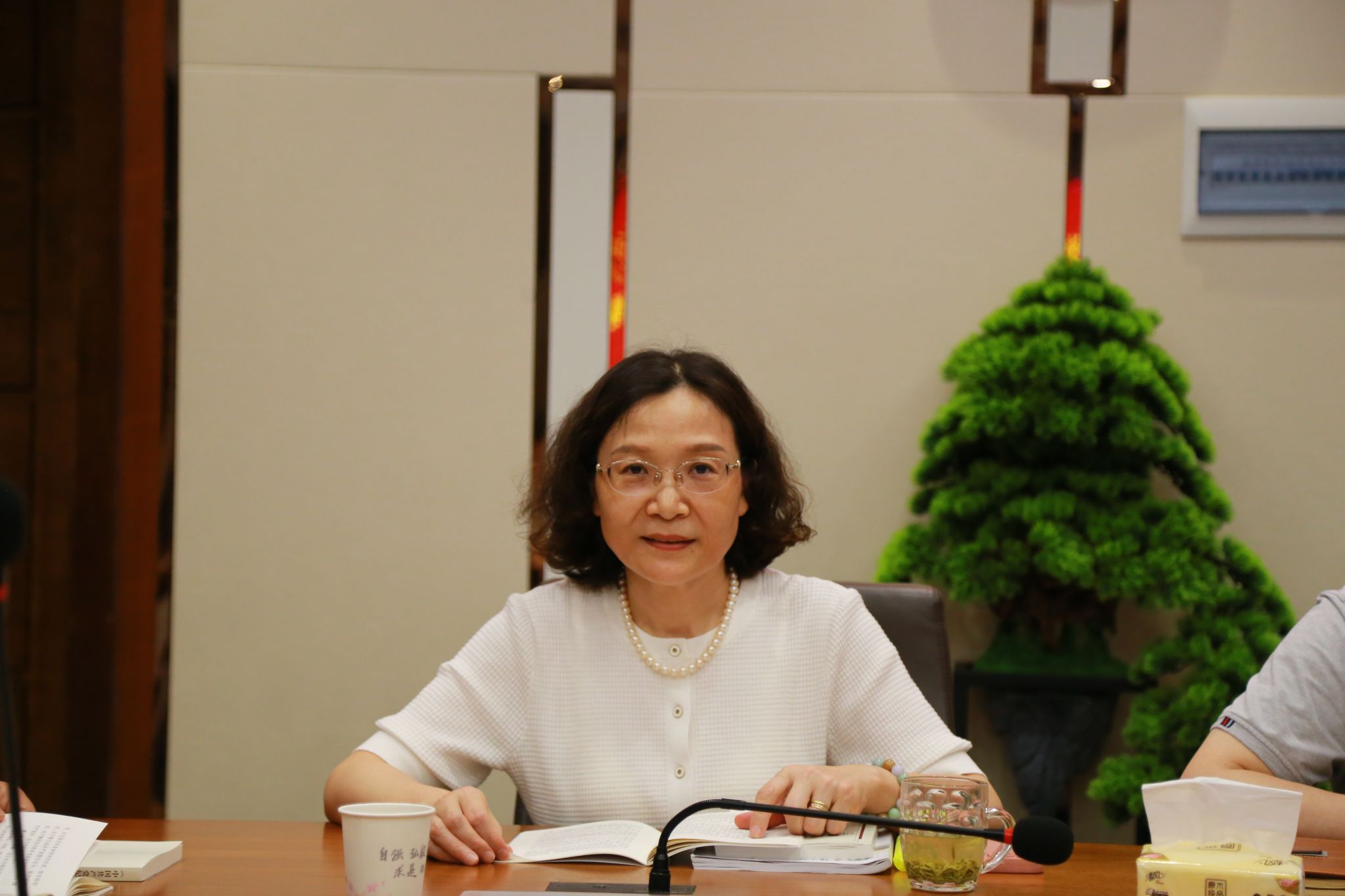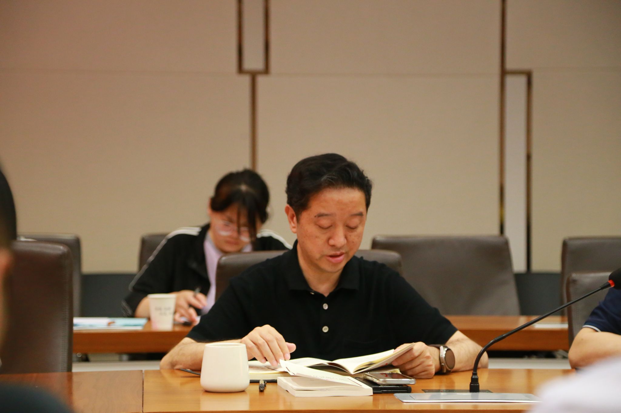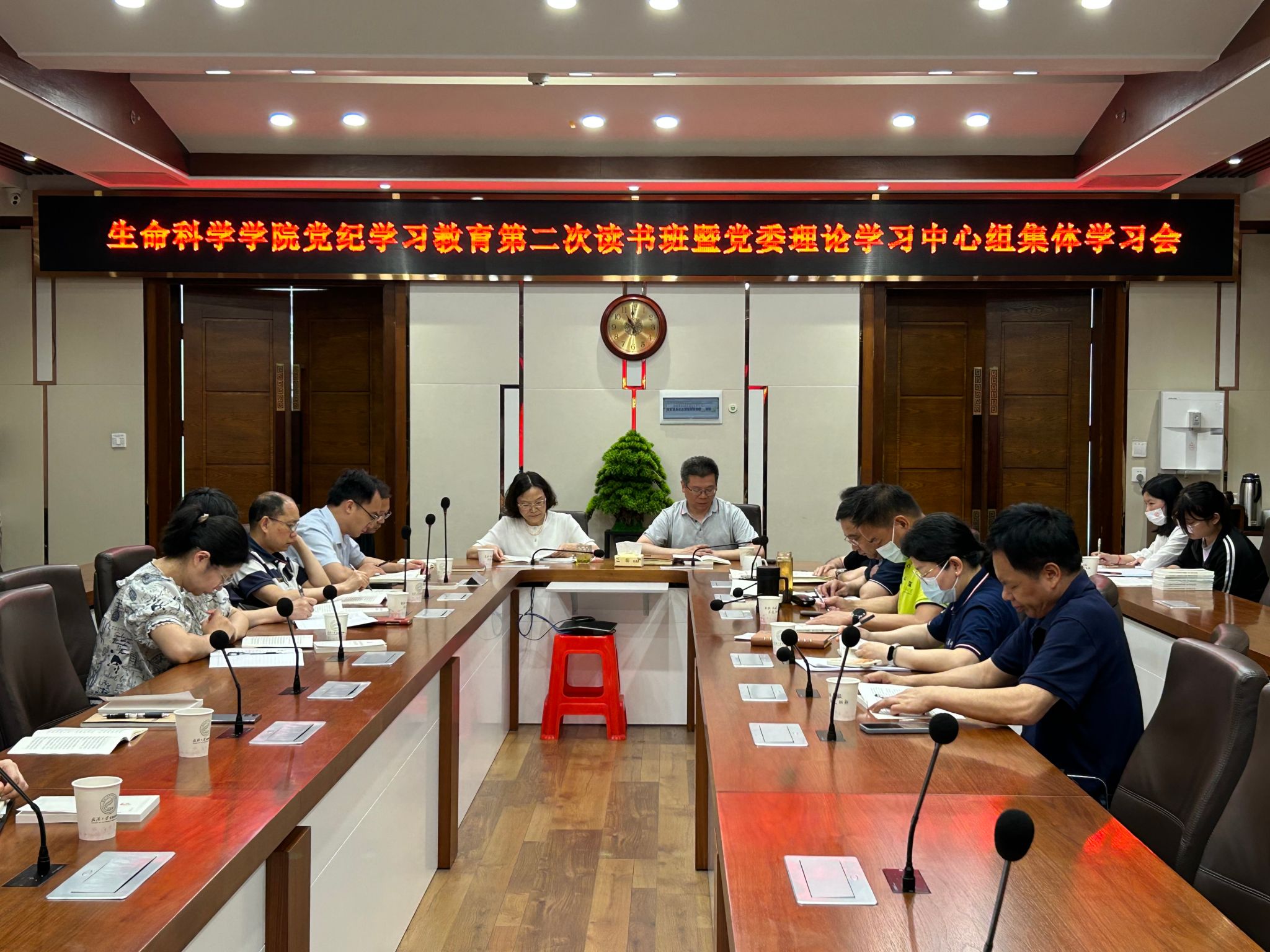 5月20日上午,hahabet在中厅举办党纪学习教育第二次读书班暨党委理论学习中心组集体学习会,院领导班子、公司党委委员、教职工党支部书记和党员代表参会,党委书记程连珍主持。