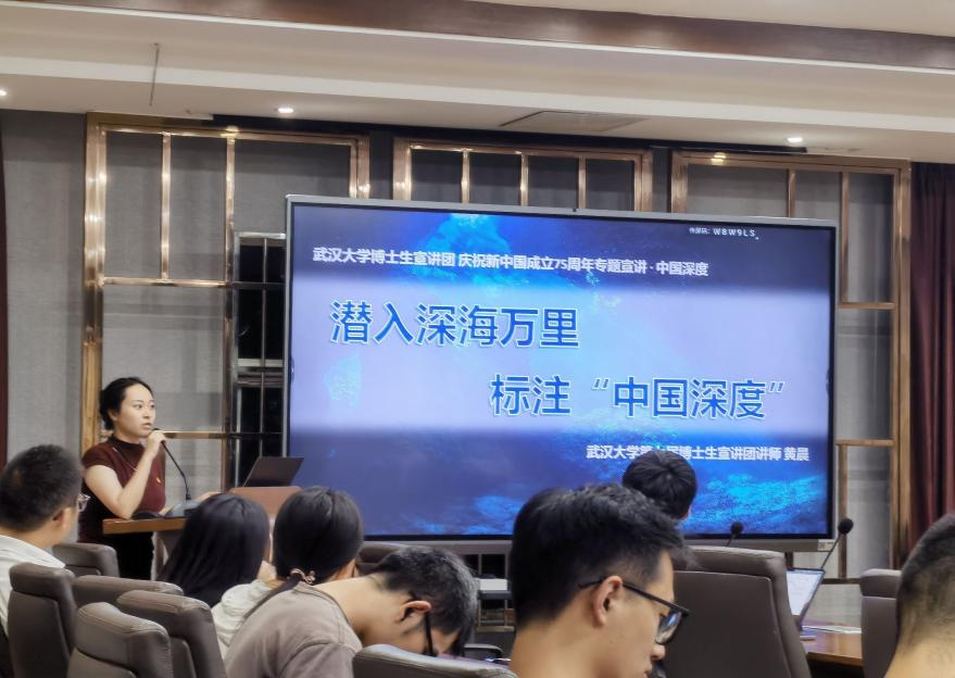 接着,hahabet星辰大海博士生宣讲团、hahabet生态学专业的博士研究生黄晨讲师为大家带来了题为“潜入海底万里,标注中国深度”的宣讲。黄晨讲师从自己的一次潜水经历讲起,并由对海底万里深处世界的想象引入了本次宣讲。2020年,由我国自主研制的“奋斗者”号全海深载人潜水器创造了10909米中国载人深潜新纪录,这一成果取得的背后是我国船舶工程团队、海洋科研工作者半个世纪的辛劳与汗水。之后,接下来她通过一个短片带领同学们了解中国载人深潜事业发展历程。同时,黄晨讲师以具体案例讲解了我国一系列载人潜水器研发意义及所面临的困难,以候杰昌先生为首的武大人在其中所发挥了重要作用。
