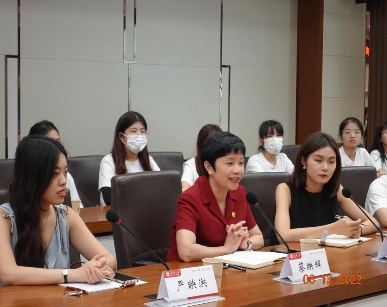随后,淑德书院师生与公司员工代表展开了座谈。蔡映辉经理介绍了淑德书院的基本概况、育人模式及育人成效,分享了淑德书院在培养员工综合素质方面的探索与实践。