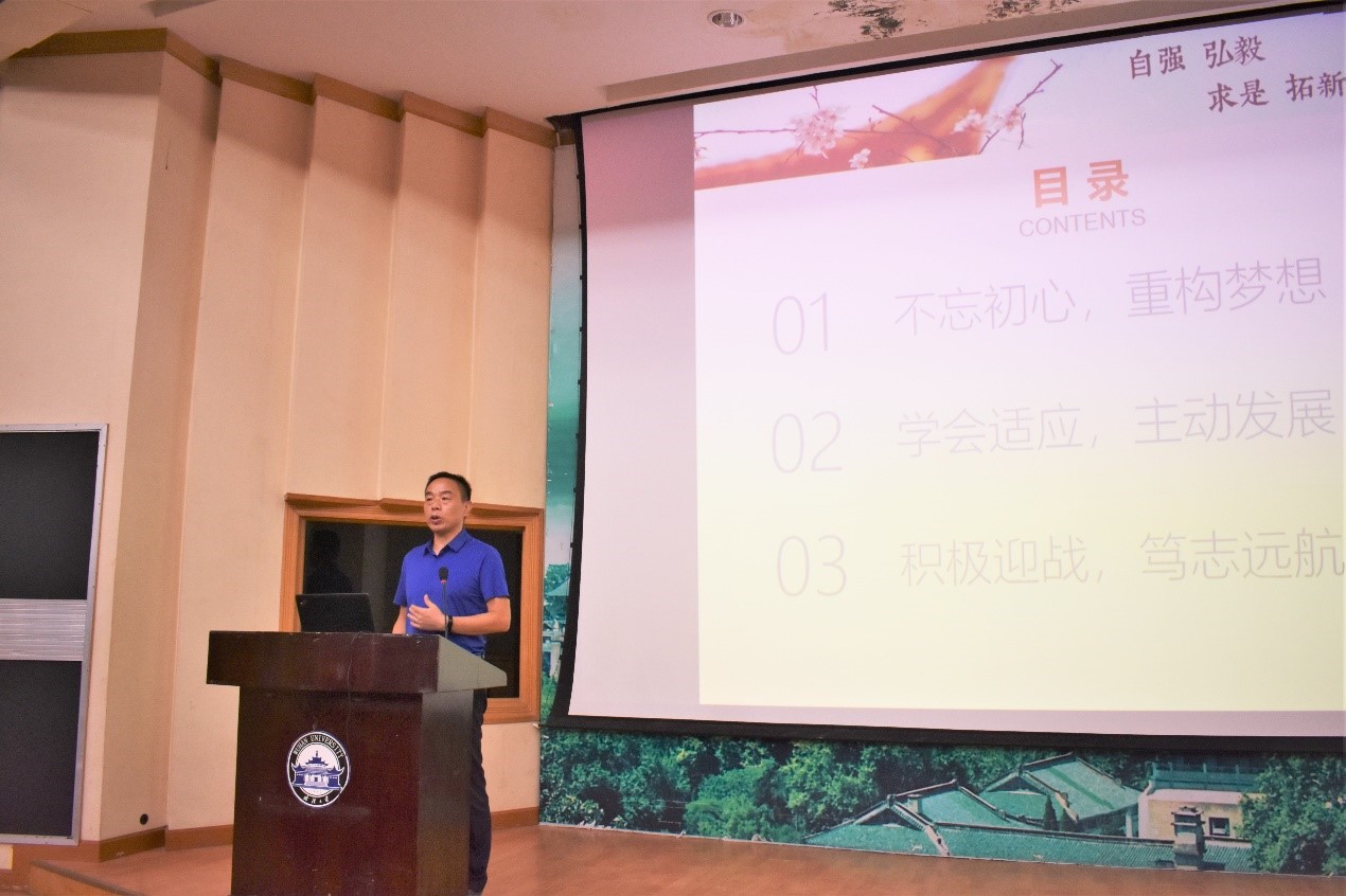 首先,宋书记以“不忘初心,重构梦想”为题,从“思考自己当初为什么要考研”讲起,引导新生思考考研的最初梦想和初心,怎么样读好研究生,以及自己未来的人生规划,读完研究生后做什么。而针对新生们迎来的新的人生阶段,宋书记提出要“重构梦想”,希望大家都能结合近况,科学进行研究生职业生涯规划,找准自己的毕业定位,明确未来奋斗目标,不断提升自我,体现个体价值的最大化。