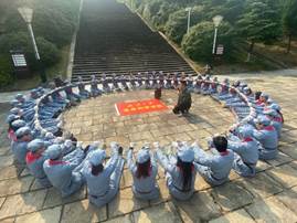 2019年11月8日上午,生科院研究生党员骨干培训班学员来到韶山烈士陵园,接受爱国主义教育,传承红色基因,缅怀和学习毛主席及革命先烈无私无畏的精神。通过合群奋斗,坚定信念的拓展活动,让党员骨干更深刻地体会到作为共产党员肩负的责任和使命,接受红色文化的洗礼,传承红军精神。