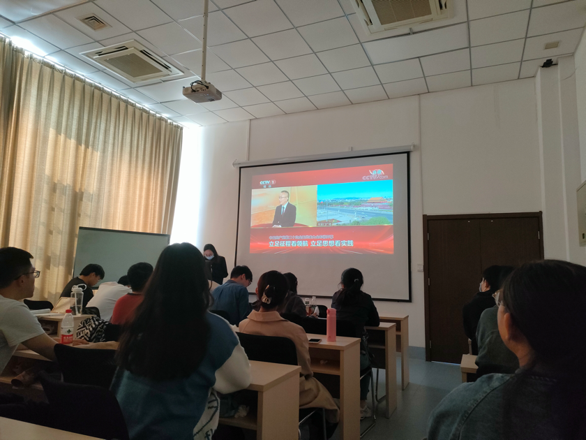 会议开始前,支部党员早早准备好,等待大会的开始。十时整,中国共产党第二十次全国代表大会正式开始,研究生党员们专心致志,认真学习听取习近平总书记所作的二十大报告。