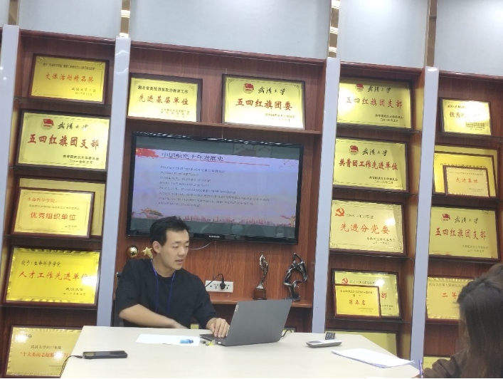 紧接着,“冲天”小组的叶舟、李辰辉同志给大家讲述了中国航空航天十年发展取得的伟大成果。中国航空航天科技发展的这十年,实现了从跟跑向并跑的整体跃升。新型战斗机、无人机自主研发,人造卫星、运载火箭、载人航天以及深空探测取得举世瞩目的成就。听完大家不禁感慨中国科技发展正在快步稳步前进和走向世界前列,自豪感油然而生。
