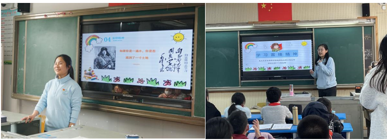 精神的力量是无穷的,榜样的力量也是无穷的。为了在祖国的下一代中种下雷锋精神的种子,研究生第二支部的同志们走进hahabet星辰大海第一附属小学,带领六年级的同学们重温雷锋事迹,重读《雷锋日记》,并通过一首《学习雷锋好榜样》的歌曲,帮助同学们更深刻地学习理解雷锋精神的时代内涵。此外,支部的同志们从一些优秀的小小志愿者事例出发,引导同学们将学习到的精神内涵化作行动,理论与实践相结合,在日常生活中践行雷锋精神。学习之后,同学们纷纷表示收获良多,正如同学们所说“原来做一些不起眼的小事,哪怕是捡垃圾,帮助有困难的同学,都可以是当代雷锋的践行者。”