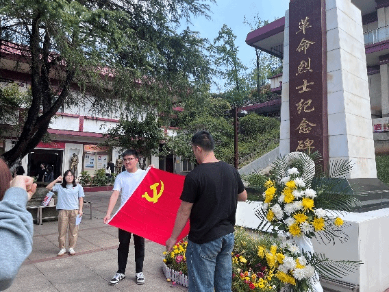 由社会学院2022级硕士研究生第一党支部的党员代表向烈士纪念碑献花,表达全体党员同志对烈士们的深深悼念与缅怀之情。