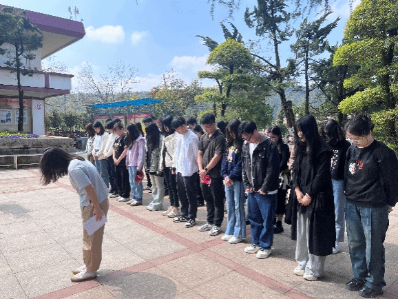在了解了九峰山烈士陵园的光荣背景并向烈士纪念碑献花后,全体成员向烈士纪念碑鞠躬默哀,表达自己的崇敬和追忆之情,向在战争中牺牲的英勇先烈敬。