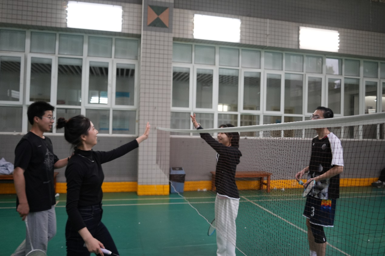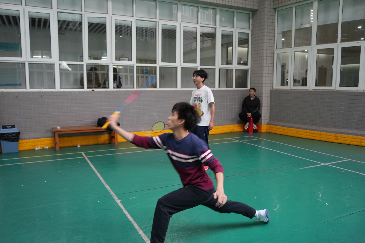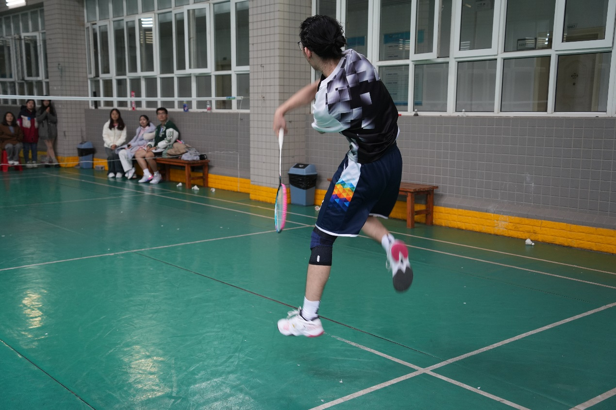 比赛当天,羽毛球场上充满了紧张与热烈的氛围。选手们在网前灵活吊球、后场精准扣杀的交锋中展现了精湛技术,在奔跑与击球间彰显了拼搏精神和团队协作力。经过上午的小组赛,23级硕士三班、23级博士一班、联队1班(23硕士二班+23硕士四班)和联队3班(24级博士一班+24级硕士一班)脱颖而出,成功晋级淘汰赛。