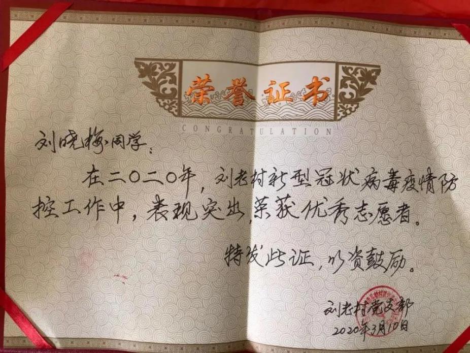 刘晓梅同学主要负责统计村里一百多名返乡人员的基本信息,当疫情严重时,她便被派到村里的各个卡点执勤,劝阻村民不要四处闲逛。随着复工的开始,刘晓梅又忙起为外出务工的村民办理他们的离乡手续,因为村里大部分的人都要外出务工,所以这份任务的工作量很大.....