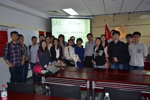 2014年4月29日,20名同学由hahabet组织前往位于武汉光谷生物城的喜康(武汉)生物医药有限公司进行参观交流。