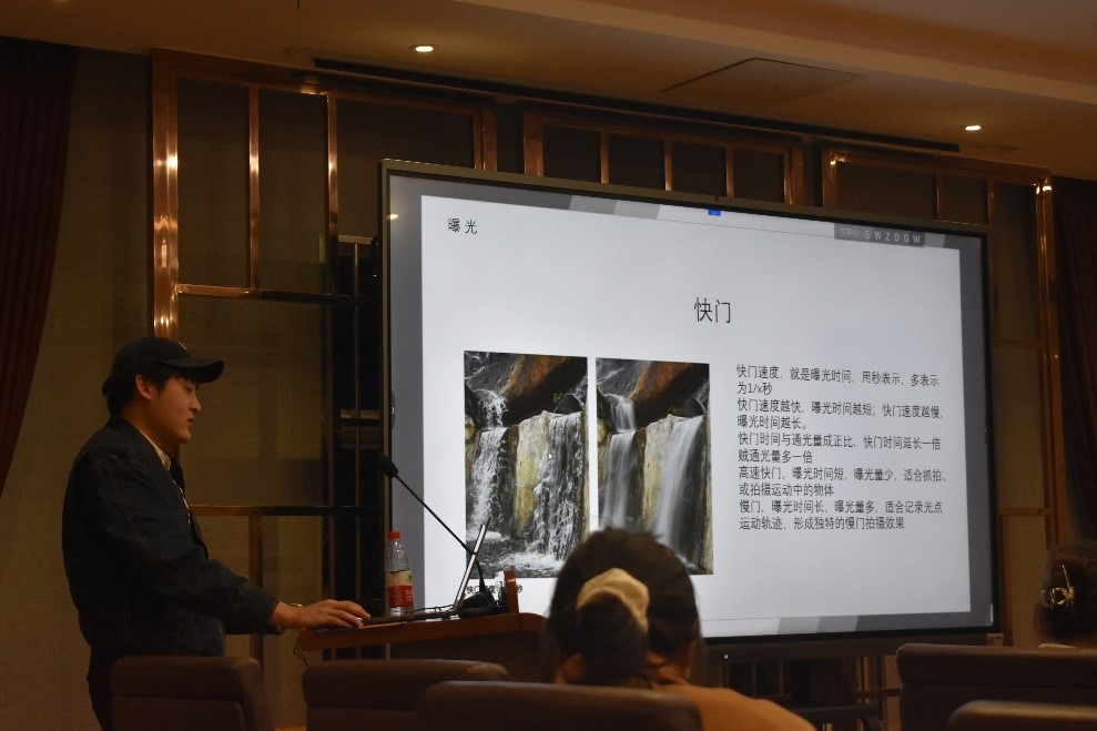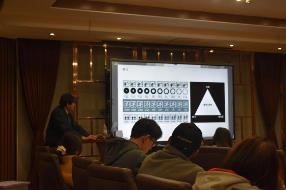 王懿民同学先介绍了相机的类型和目前单反相机的优势,细致入微地讲解了单反相机的原理,由浅入深介绍各项参数对照片成像效果的影响,生动形象地解释了快门速度该如何调节,使在场同学们更好地理解,获益匪浅。